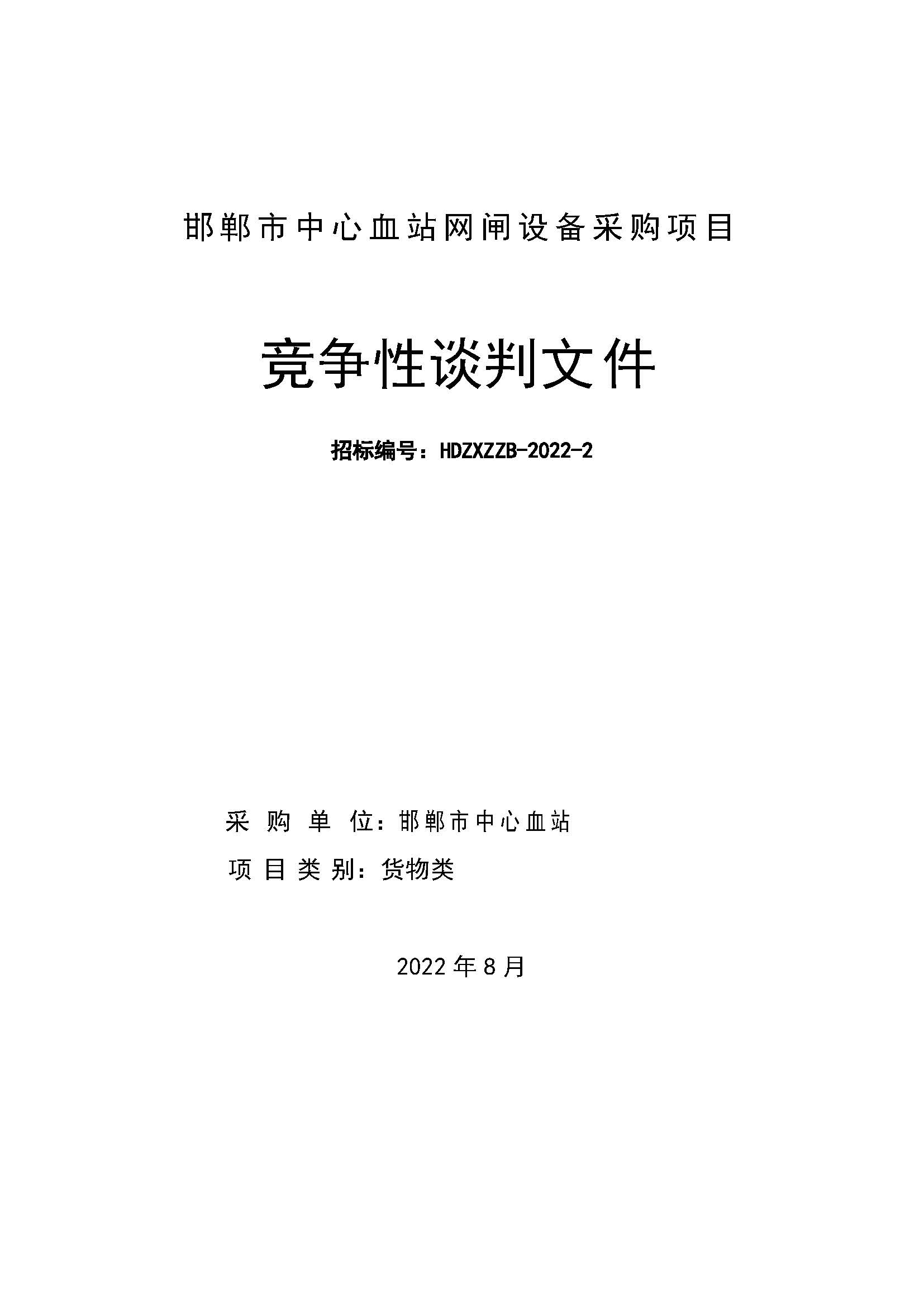 邯郸市中心血站网闸设备采购项目竟争性谈判文件
