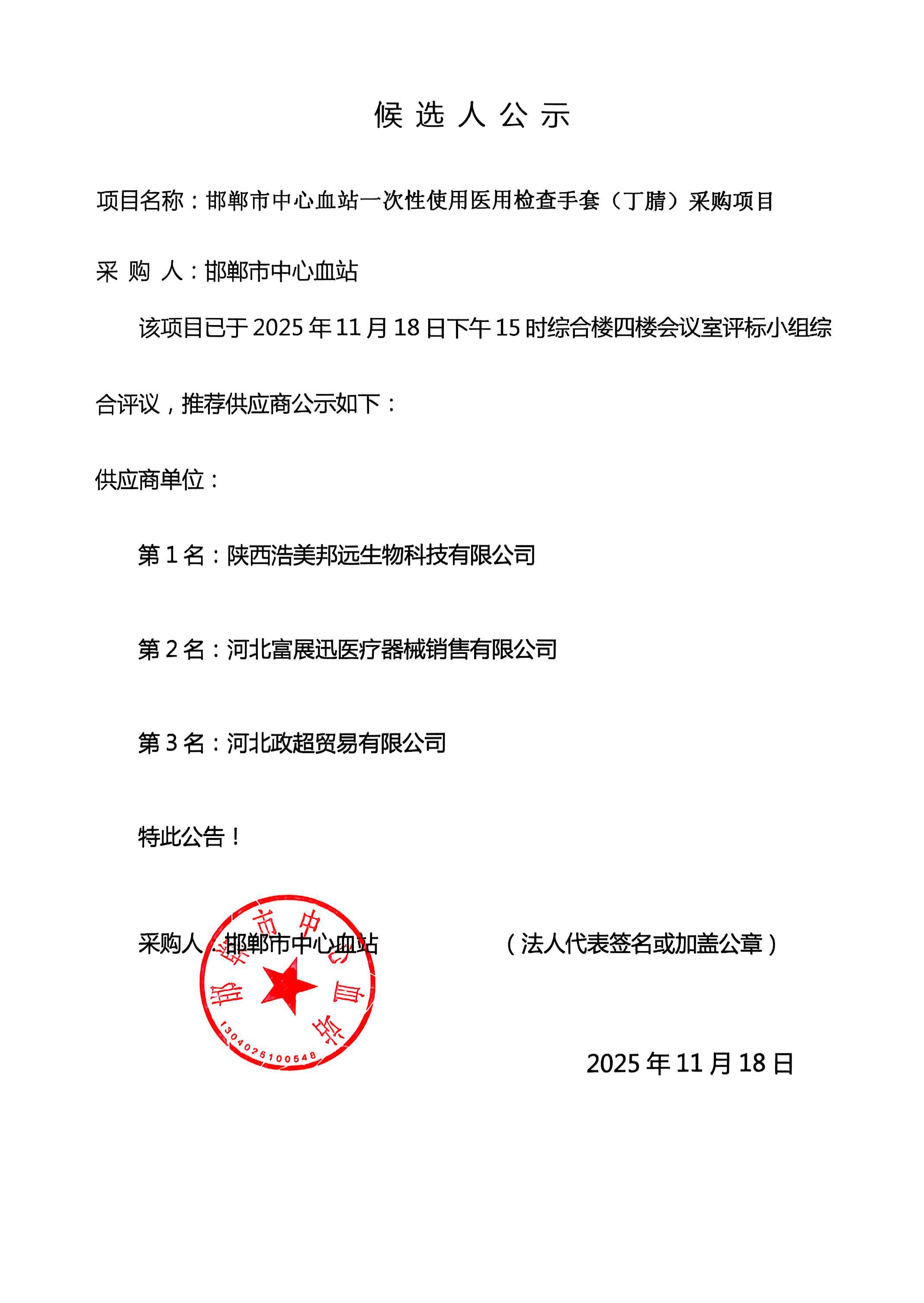 抗A抗B血型定型试剂(单克隆抗体)采购项目候选人公示